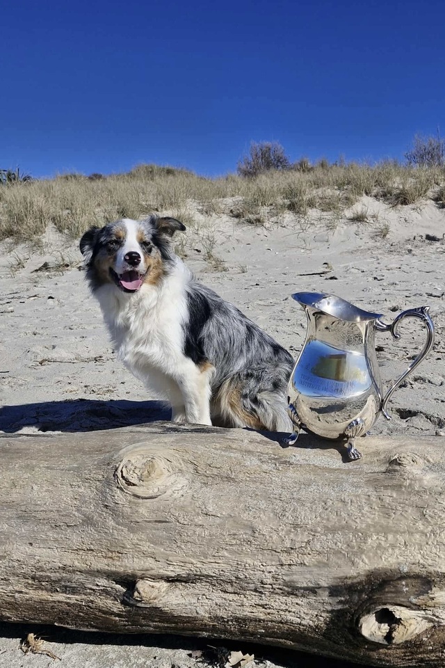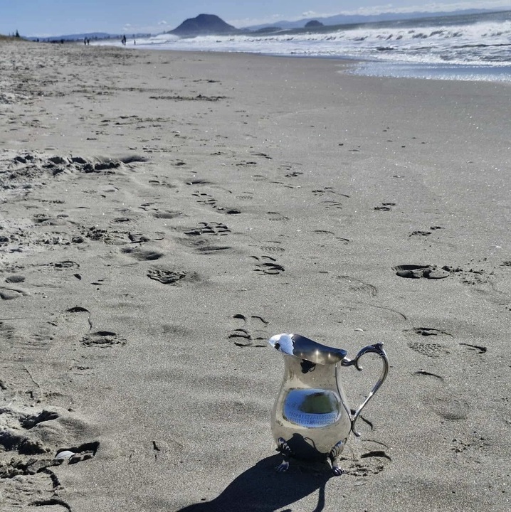 Our "cup" travelled to Papamoa, then, was off to the beach. Enjoying the winter sun and beach weather with no crowds and Willow by her side.